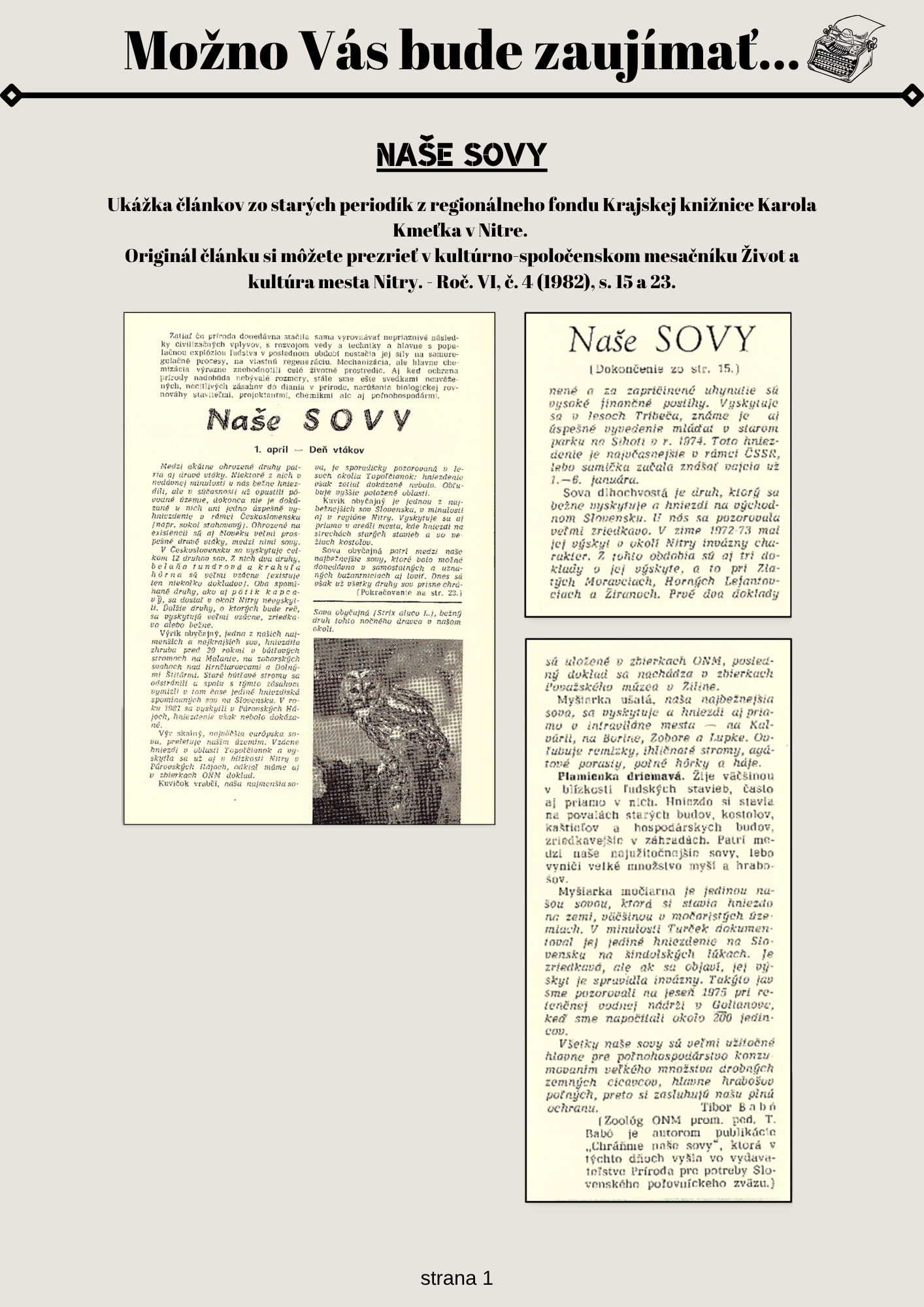 Z nášho regiónu Napísané dňa 01. apríl 2026. Osobnosť regiónu a ukážka článkov zo starých periodík. Ak si chcete pozrieť staršie články, kliknite sem.